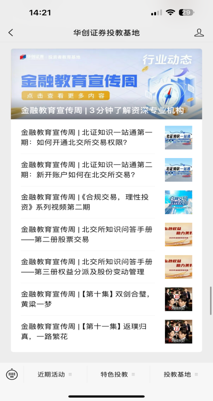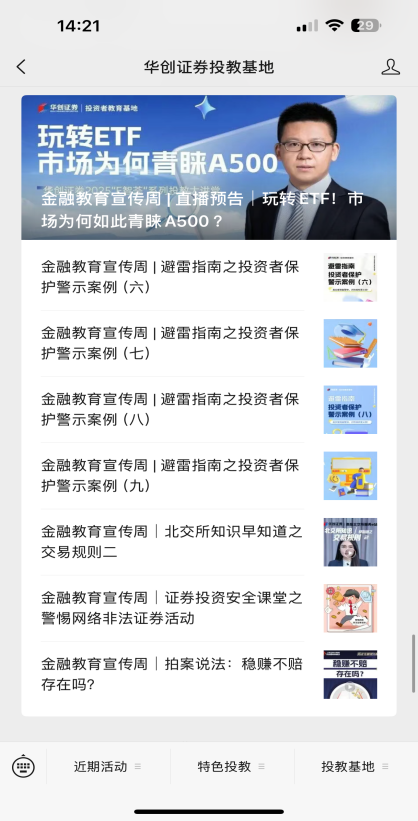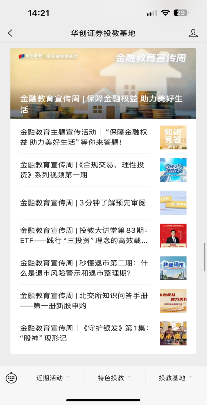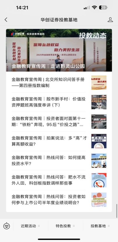 华创证券将以本次活动为契机,实现金融教育工作常态化、长效化,以广泛提升消费者金融素养为目标,切实履行金融机构主体责任,聚焦新形势下投资者关切的问题和需求,建立完善常态化金融教育工作机制,做到形式有温度、内容有深度、活动有力度,提高人民群众金融服务的便利性、可得性和获得感。